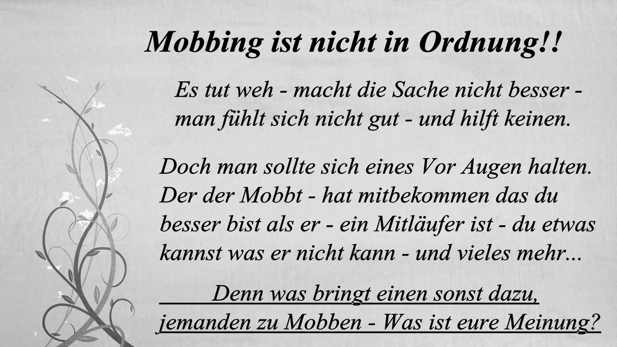 İşte, iş yerinde uygulanan psikolojik şiddet anlamı da içeren. Es wird eher durch handlungen und behinderungen gemacht. Sofortige sammlung von beispielbildern anti mobbing sprüche sprüche es ist für manche interessant und manchmal sehr inspirierend für ihre sprüche.